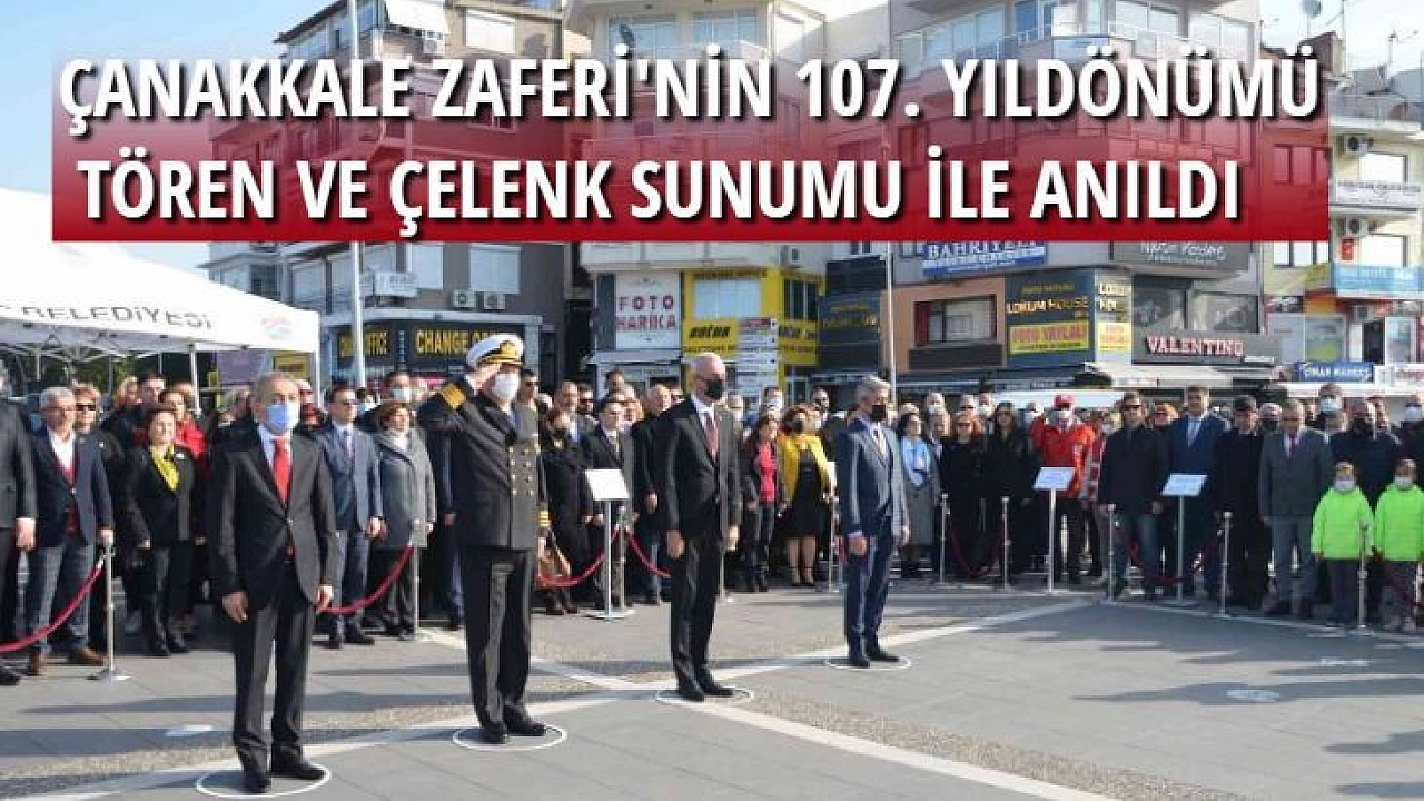 18 Mart Çanakkale Zaferi ve Şehitlerini Anma Günü 107. yıl dönümü programı için Atatürk Meydanı’nda düzenlenen programda Atatürk Anıtı’na Kaymakam Ertuğ Şevket Aksoy, Aksaz Deniz Üs Komutanı Tuğamiral İbrahim Kurtuluş Sevinç, Cumhuriyet Başsavcısı Nuh Mete Hatipoğlu, Marmaris Belediye Başkanı Mehmet Oktay tarafından çelenk sunumu gerçekleştirildi. Anma programı, Aksaz Deniz Üssü bandosunun katılımı ile saygı duruşu ve İstiklal Marşı’nın okunması ile başladı. Aksaz Deniz Üs Komutanlığından Bando Binbaşı Tayyar Cenk Caner, günün anlam ve önemini belirten konuşmasını yaptı. Konuşmanın ardından tören sona erdi. Marmaris İlçe Emniyet Müdür V. Oktay Kapsız, İlçe Jand. Komutanı J.Yarbay Murat Çam, Resmi kurum ve kuruluş müdürleri ile siyasi parti ilçe başkanları, gazi ve şehit dernekleri çeşitli sivil toplum kuruluşların da katıldığı törenin ardından 18 Mart Çanakkale Zaferi ve Şehitleri Anma Günü Armutalan Kültür Merkezi’nde düzenlenen program ile devam etti.