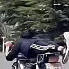 Bir sürücü kendi canını hiçe sayıp, motosikletin üzerine uzanarak seyretti.