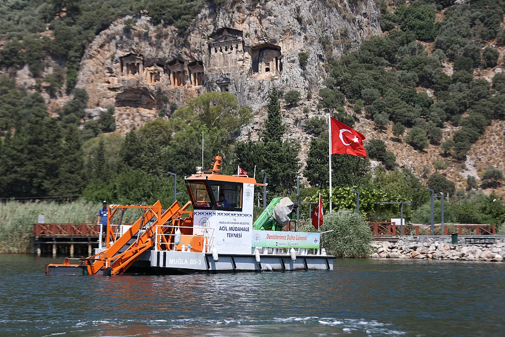 Muğla Büyükşehir Belediyesi, nesli tükenme tehlikesi altındaki Caretta caretta kaplumbağalarının yaşam alanı olan Köyceğiz Gölü ve Dalyan kanallarında, 'MUĞLA BB-3' isimli Acil Müdahale Teknesi ile yüzey temizliği çalışması yaptı.