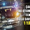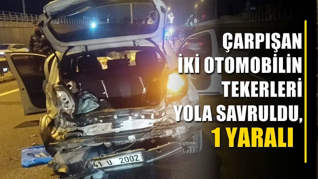 Seyir halinde olan 2 otomobil çarpışırken bir kişi yaralandı. Kazada araçlar ezilirken tekerleri yola savruldu.