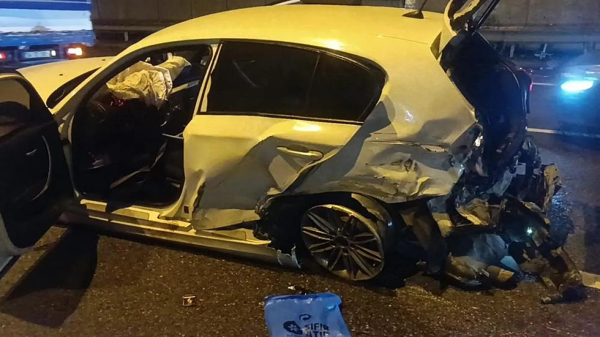 Çarpışan iki otomobilin tekerleri yola savruldu, 1 yaralı