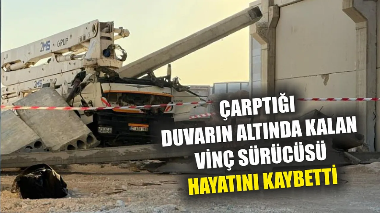 Bir vinç sürücüsü çarptığı duvarın üzerine çökmesi sonucu hayatını kaybetti.