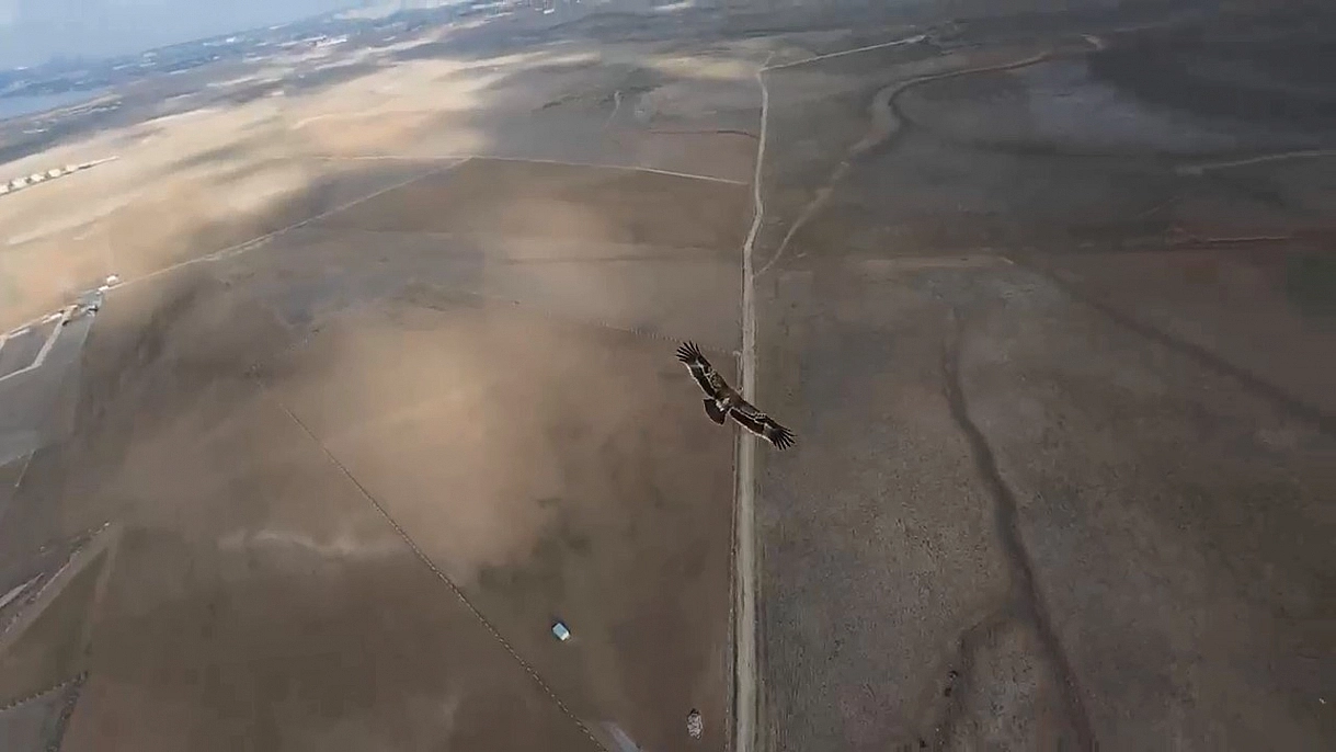 Çekim yapan dron şahinin radarına takıldı