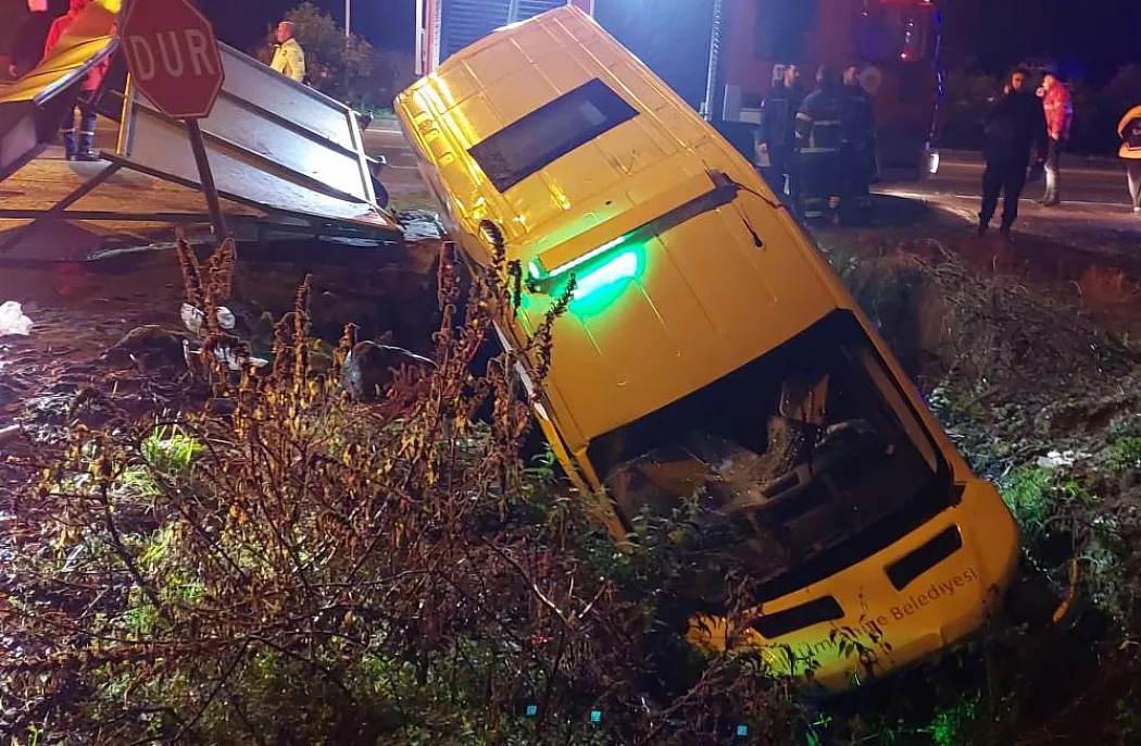 Cenazeye gidenlerin bulunduğu minibüsün sulama kanalına düşmesi sonucu meydana gelen kazada 10 kişi yaralandı.
