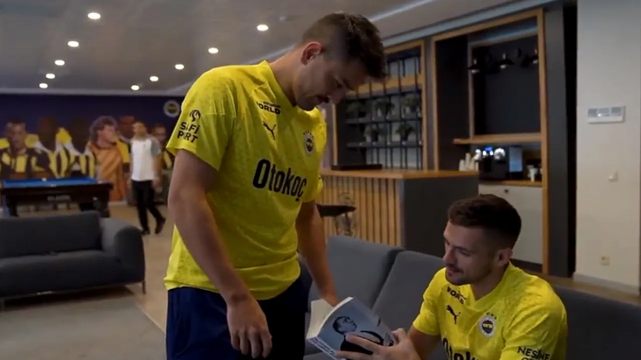 Fenerbahçe'nin milli yıldızı Cengiz Ünder, 29 Ekim Cumhuriyet Bayramı'nda yabancı takım arkadaşlarına Mustafa Kemal Atatürk'ün Nutuk kitabının İngilizcesini hediye ettiği anları paylaştı.