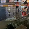 Milas'ta sağanak yağış sonucu derelerin taşması sokakları göle çevirdi, ceviz büyüklüğünde yağan dolu ise araçlara zarar verdi.