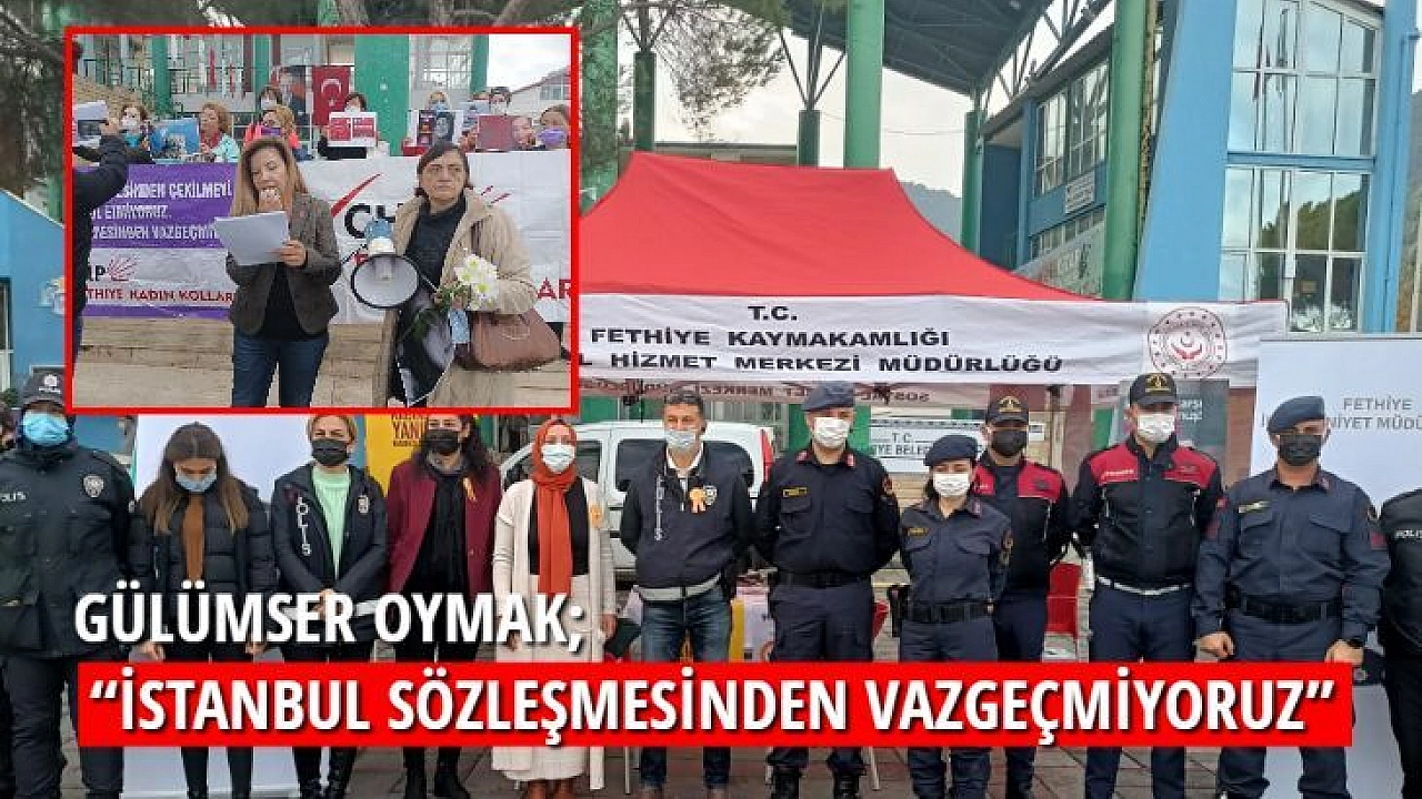 25 Kasım kadına Yönelik Şiddete Karşı Uluslararası Mücadele Günü nedeni ile Cumhuriyet Halk Partisi Fethiye Kadın Kolları Başkanı Gülümser Oymak tarafından Fethiye Özer Olgun Kültür Merkezi önüne basın açıklaması yapıldı.Tüm Türkiye’de eşzamanlı olarak yapılan basın açıklamasına CHP Fethiye Kadın Kolları Üyeleri katıldı.Gülümser Oymak yaptığı basın açıklamasına “İstanbul Sözleşmesi’nden Vazgeçmiyoruz” diyerek başladı.Oymak açıklamasında “25 Kasım Kadına Yönelik Şiddete Karşı Uluslararası Mücadele Günü, gücünü üç kız kardeşin bir diktatöre karşı verdiği onurlu mücadeleden alıyor.