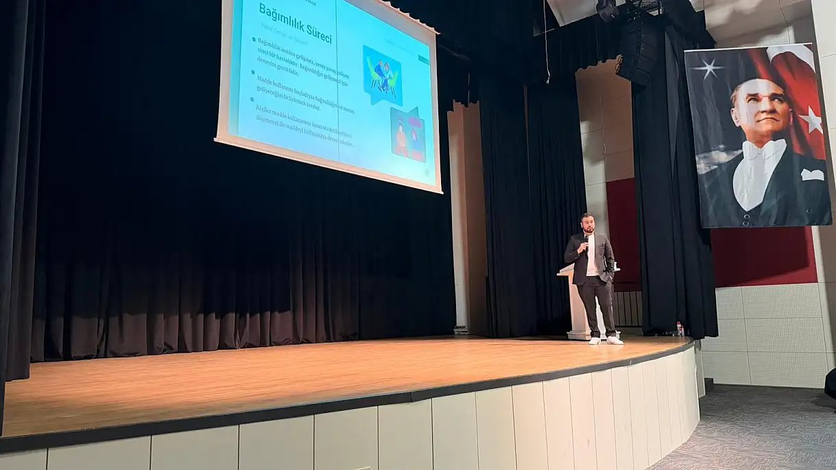 CHP Fethiye İlçe Başkanlığı tarafından Özer Olgun Kültür Merkezi'nde düzenlenen bilgilendirme sunumunda, bağımlılık türleri ve korunma yolları ele alındı.