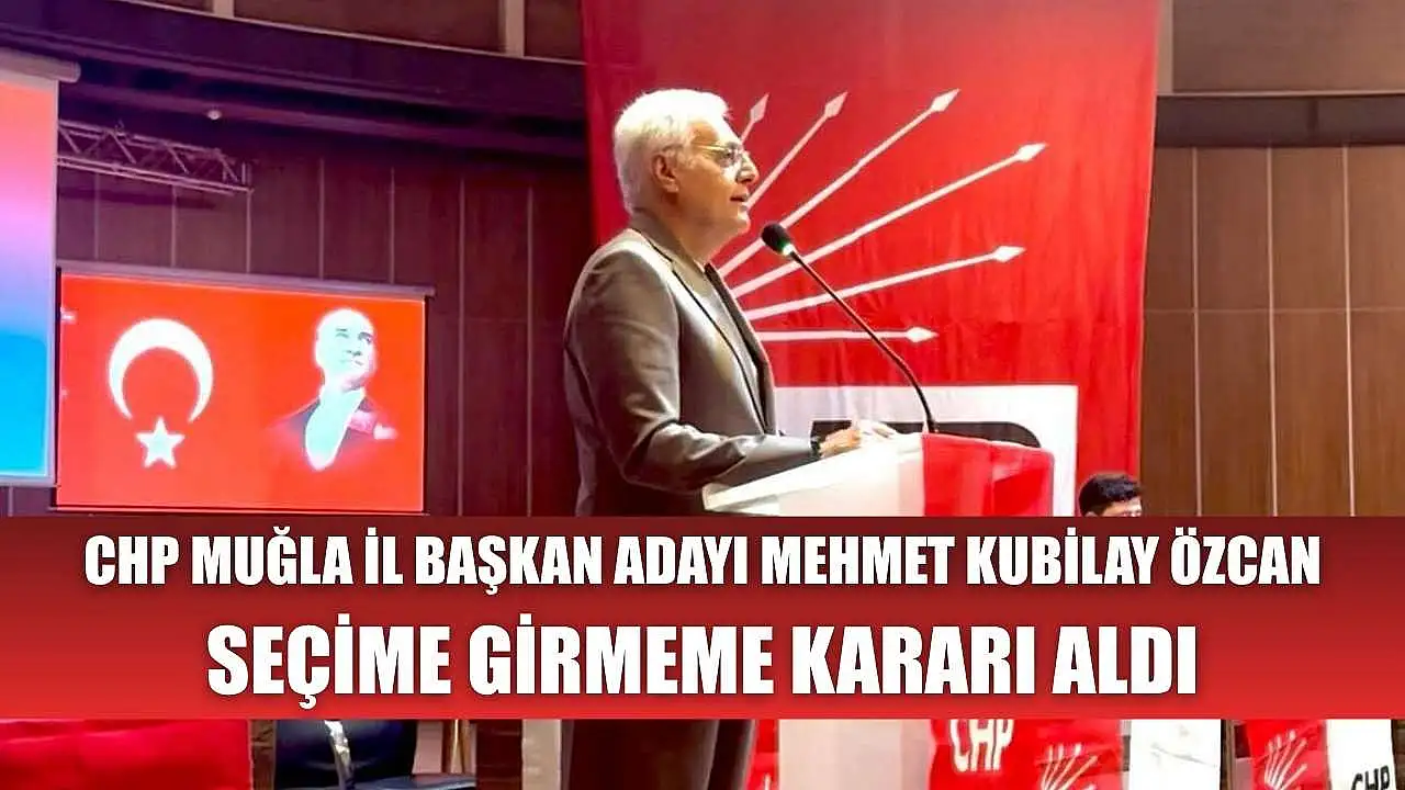 Cumhuriyet Halk Partisi'nde (CHP) Muğla İl Başkanlığı seçimi öncesi önemli bir gelişme yaşandı. CHP Muğla İl Başkan Adayı Mehmet Kubilay Özcan, yaptığı yazılı açıklamayla seçim yarışına katılmama kararı aldığını duyurdu.
