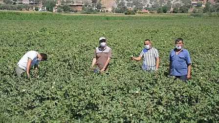 Milas Ziraat Odası Başkanı İsmail Atıcı, MİZO’da görevli ziraat mühendisleri Yusuf Ören ve Abdullah Öz ile birlikte ilçe pamuk tarımı yapılan tarlalarda incelemelerde bulunarak çiftçileri ziyaret etti. Pamuk ekiminin başından bu yana birçok çiftçiye tarımsal yayım ve danışmanlık hizmeti sunan Ziraat Mühendisleri Ören ve Öz, çiftçileri pamukta verimin artırılması adına tavsiyelerde bulundu.