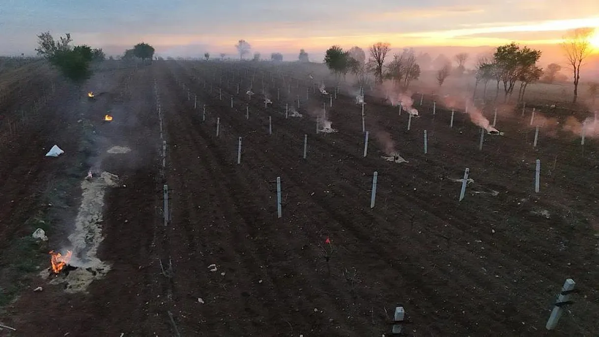 Don uyarısından sonra çiftçiler sabaha kadar tarlalarında nöbet tuttu. Saman balyası, tekerlek yakarak ve sisleme makinesiyle çiftçiler ürünlerini dondan korumaya çalıştı.