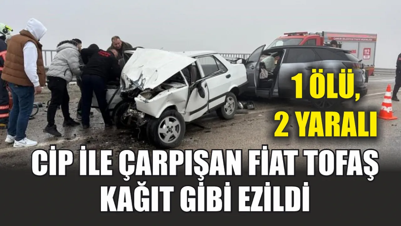 Çankırı'da cip ile çarpışan Fiat-Tofaş otomobilin hurdaya döndüğü kazada 1 kişi öldü, 2 kişi yaralandı.