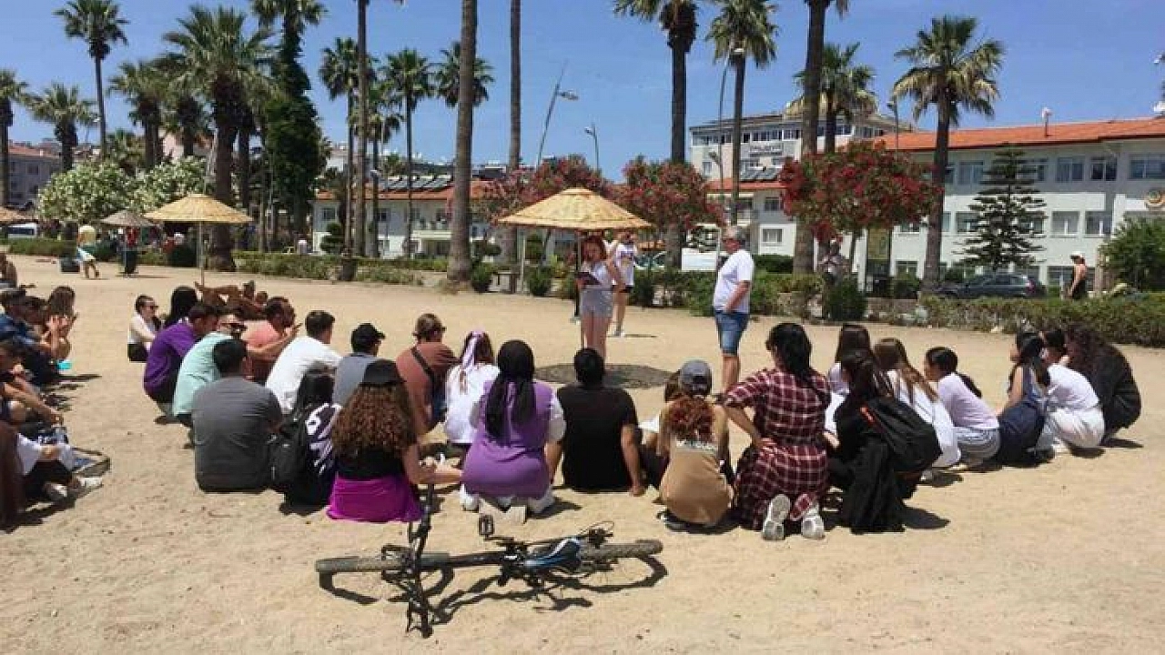 Çalışmanın üçüncü durağı, Marmaris ilçe merkezinde bulunan plajlar oldu. Öğrenciler önceden hazırlamış oldukları görüşme formları ile yerli ve yabancı turistler ile mülakatlar yaparak Marmaris ilçesinde gerçekleşen turizm eylemleri hakkında SWOT (üstünlük, zayıflık, fırsatlar, tehditler) analizi çalışması yaptı.