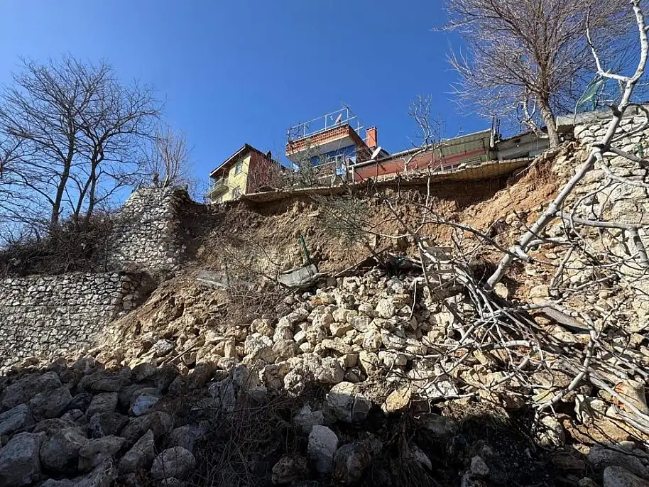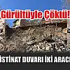 Denizli'nin Güney ilçesinde yaklaşık 5 metrelik istinat duvarının çökmesi sonucu, enkaz altında kalan iki araç kullanılamaz hale geldi.
