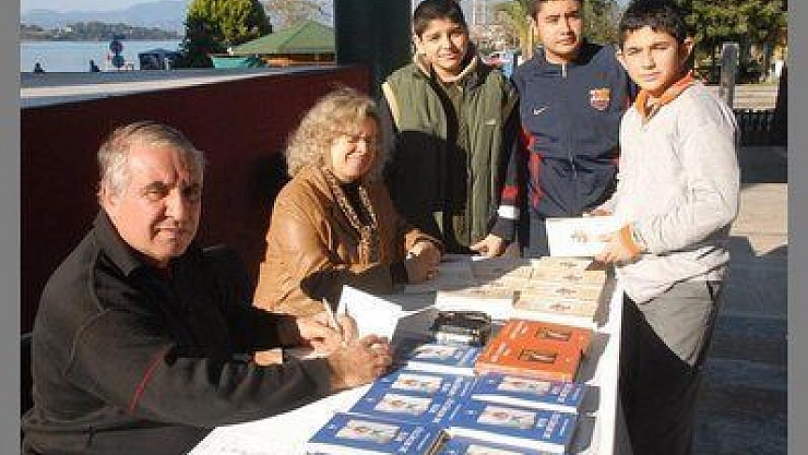 Fethiyeli Şair ve yazarlardan Coşkun Karabulut ve Şahsene Camuz Fethiye Kültür Merkezi önünde kitaplarını imzaladılar.