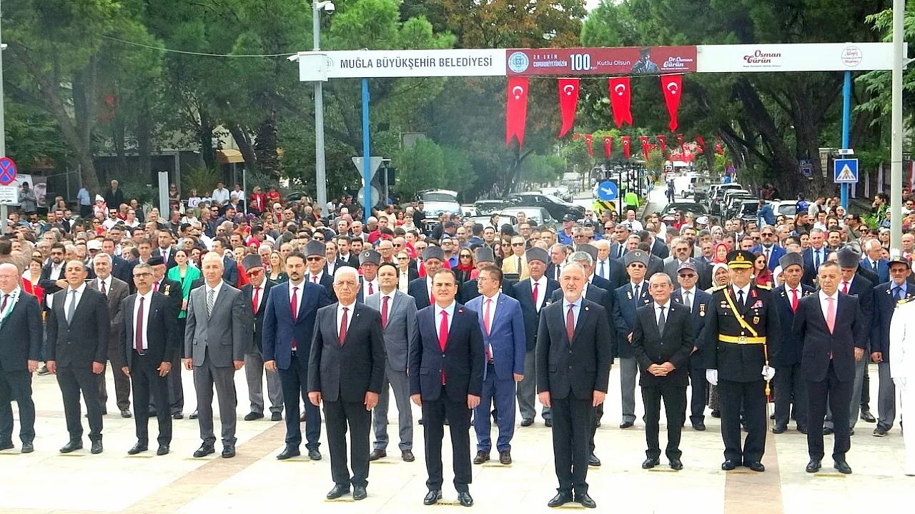 Muğla'da cumhuriyetin kuruluşunun 100. yılı kutlamaları Atatürk büstüne çelenk sunulması ile başladı.