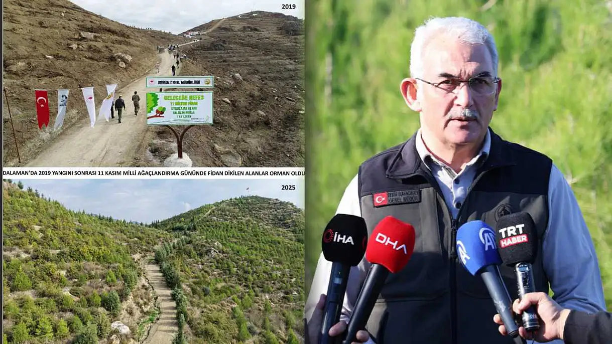 Dalaman-Göcek yangınında yanan bin 433 hektar alanın tekrar ağaçlandırılması çalışmaları kapsamında yaklaşık 450 bin fidan dikildi ve alana yaklaşık 35 ton tohum atıldı. Dalaman’da 11 Kasım 2019’da dikilen fidanlar aradan geçen 6 yılda büyüdü ve yer yer 3 metreye bulan boylarıyla genç ağaçlara dönüştü.