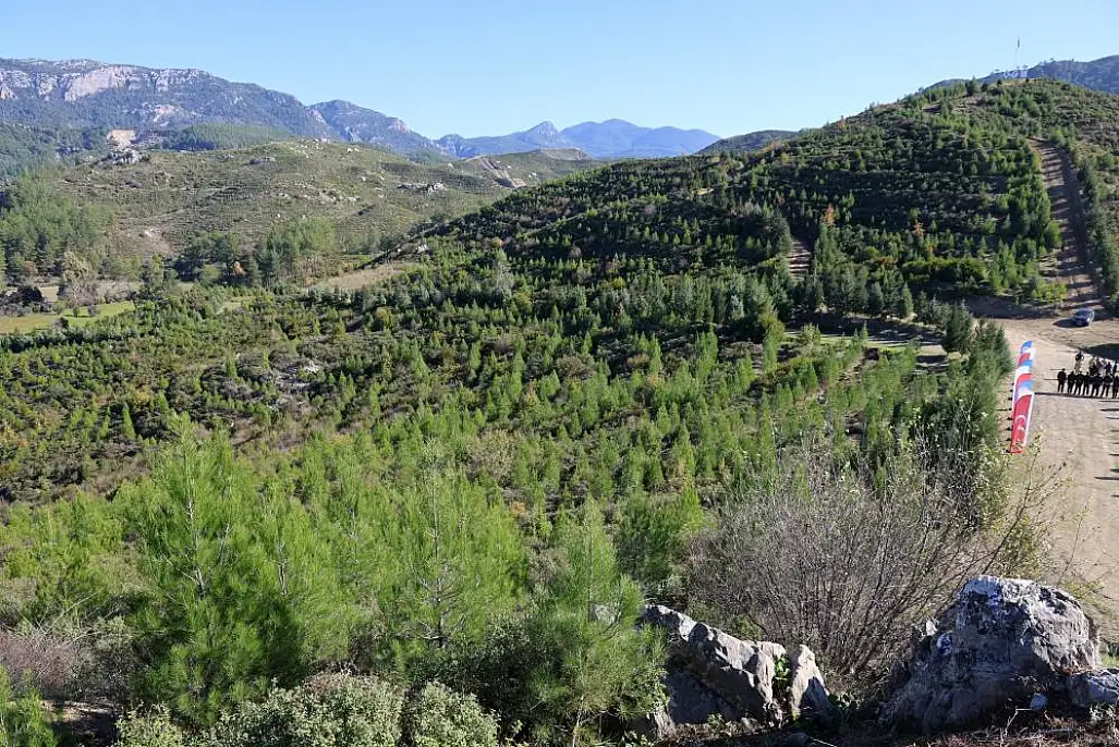 Yanan sahada fidanların ağaca dönüşmesini havadan helikopter ile gören Orman Genel Müdürü Bekir Karacabey, "Burası içinde bulunduğumuz saha maalesef 10 Temmuz 2019 gününde bir yangına maruz kalmış ve o zaman için hepimizi üzüntüye boğan bir sahaydı. Burası tekrar, o zaman ifade ettiğimiz gibi tekrar yeşil dokusuna, yeşil örtüsüne kavuştu. Tabii bu arada kayıp olan şey sadece yıllar değildi, bu yeşilliğin kaybolmasıyla ilgili birçok ağacımızla birlikte bu alanda bulunan birçok canlı, gördüğümüz görmediğimiz birçok canlı da hayatını kaybetmişti. Biz yanan alanlarımızın, yanan orman alanlarımızın tamamını tek bir metre karesi istisna olmaksızın yeniden ağaçlandırıyoruz, yeniden ormanlaştırıyoruz. İşte onun örneklerinden bir tanesini de burada hep birlikte şahit oluyoruz. 2019 yılında hemen 11 Kasım'ına geldiğimizde biliyorsunuz Milli Ağaçlandırma Günü 2019 yılında ilan edildi ve bizler burada 11 Kasım 2019 tarihinde Milli Ağaçlandırma Günü'nü kutlamak maksadıyla sahaya geldiğimizde sahanın tamamında arazi hazırlığı yapılmış, toprak işlemesi tamamlanmış, yeniden ağaçlandırmaya, yeniden fidan dikimine hazır hale getirmiştik. 450 bin fidan ve 35 ton tohumu da bu sahada toprakla buluşturarak şu anda hepimizi memnun eden görüntünün oluşmasını sağlamış olduk. Yanan alanlarda hemen ilk öncelikle sahadaki yanan ağaçları sahadan çıkardıktan sonra etüdünü yapıp, burada hangi usulle, hangi yöntemle tekrar ormanlaştırma çalışması yapacağımızı planladıktan sonra da en geç bir yıl içerisinde bu alanların tekrar ormanlaştırılmasıyla ilgili çalışmaları yürütüyoruz. Bugüne kadar ülkemizin hiçbir yanan alanın hiçbir metrekaresinde ormanlaştırma çalışmalarının dışında herhangi bir müdahale olmamıştır. Bunu tekrar tekrar ifade etmek istiyorum çünkü maalesef vatandaşlarımızın zihninde yanan alanların ormanın dışında maksatlarla kullanılacağıyla ilgili bir takım istifamlar, şüpheler oluşuyor. Bunu ortadan kaldırmış olmak adına tekrar ifade etmek istedim" dedi.