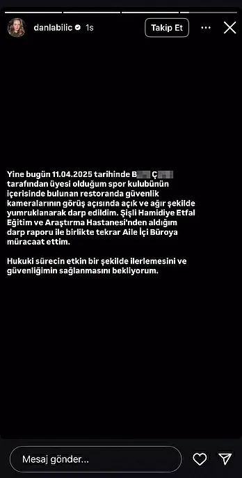 Sosyal medya fenomeni Danla Bilic, eski sevgilisi Berk Çetin tarafından şiddetli bir saldırıya uğradı. İstanbul'daki bir restoranda güvenlik kameralarına yansıyan saldırı sonrası Bilic, KADES uygulamasıyla yardım talep etti ve olayı yasal yollarla takip etti. Şiddet ve tehdit içeren bu olayın ardından Bilic, hukuki sürecin hızla ilerlemesini bekliyor.
