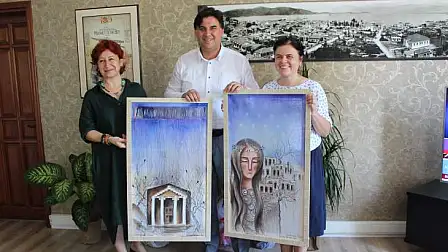 Fethiye Dastarhane Müdürü Emel Asyalı ve Fethiye Belediyesi Kültür Merkezi’nde görevli Resim Öğretmeni Nurdan Karakaş, Fethiye Dastarhanesi’nde dastar üzerine dokunan ve resim ile renklendirdikleri tabloyu Fethiye Belediye Başkanı Alim Karaca’ya armağan ettiler. Başkan Alim Karaca’yı makamında ziyaret ederek, belediyenin kendilerine verdikleri desteklerden dolayı da teşekkür eden Asyalı ve Karakaş, dastarhanede yapılan işler hakkında bilgi verdiler.