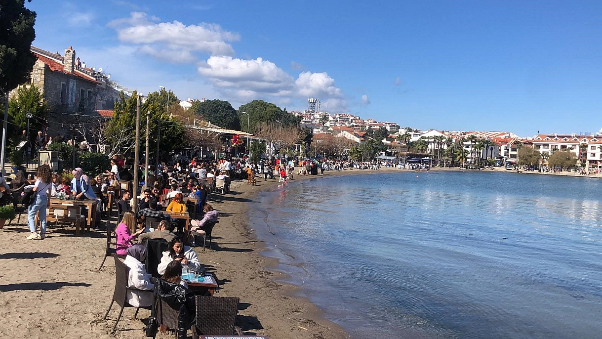 Muğla'nın Datça ilçesinde gerçekleştirilen Geleneksel Datça Badem Çiçeği Festivali, yoğun bir katılımla devam ederken, hava sıcaklığının 15 dereceleri bulduğu ilçede güneşi gören vatandaşlar sahillere akın etti.