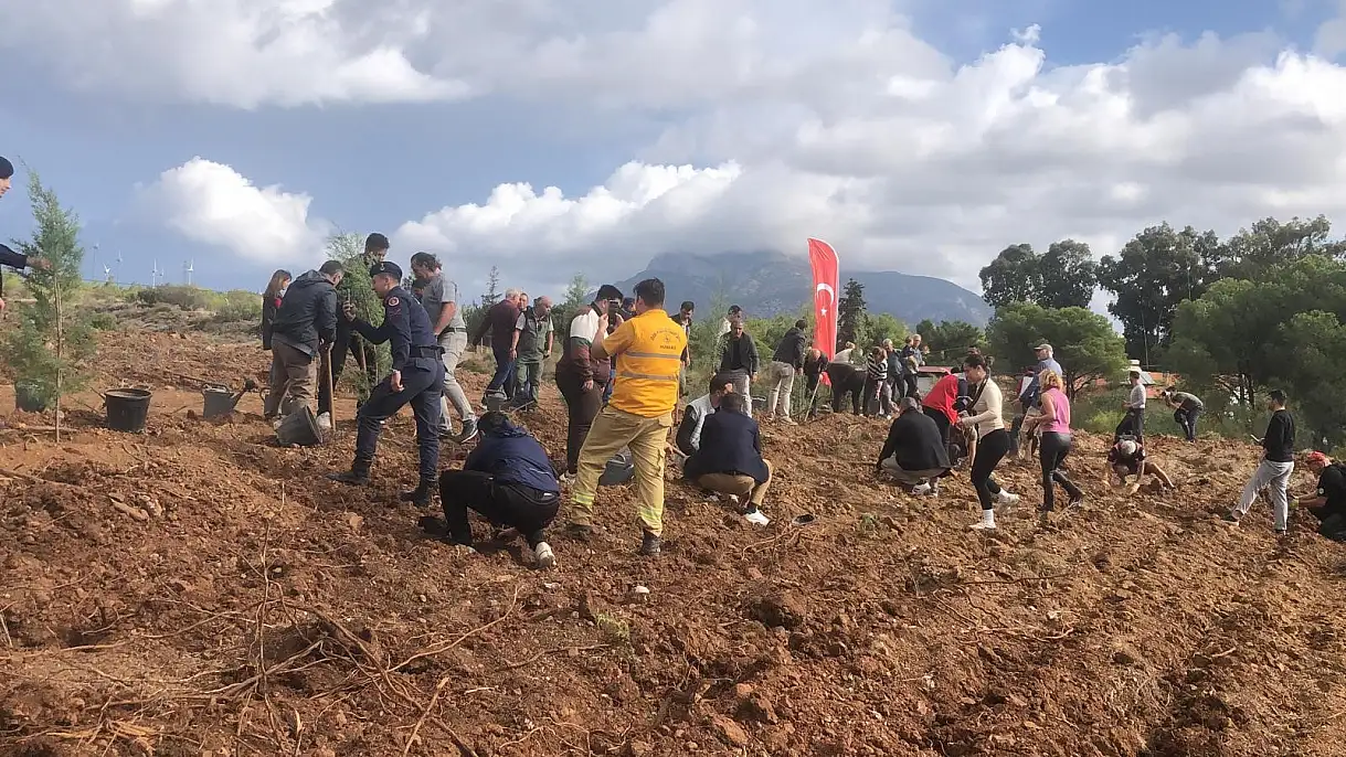 Muğla'nın Datça ilçesinde, 11 Kasım Milli Ağaçlandırma Günü dolayısıyla düzenlenen etkinlikte yüzlerce fidan toprakla buluşturuldu.