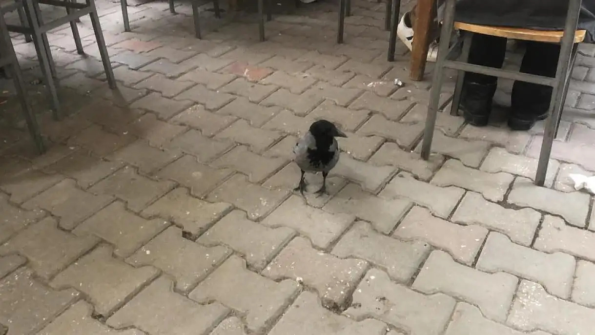 Muğla'nın Datça ilçesinde 3 ay önce tedavi edilen karga, mahallenin maskotu haline geldi. Rıfkı adı verilen sevimli karga geceleri kafeste, gündüzleri ise kahvede vakit geçiriyor.