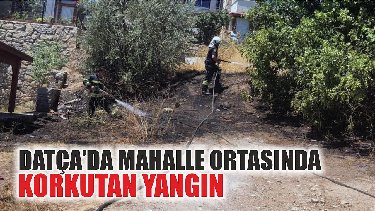 Muğla'nın Datça ilçesi İskele Mahallesinde boş alanda bulunan kuru otların tutuşması ile başlayan yangın evlere sıçramadan itfaiye ekipleri tarafından söndürüldü.