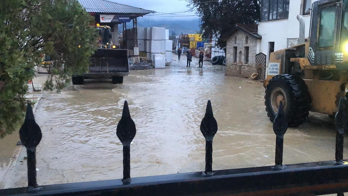 Muğla'nın Datça ilçesinde etkili olan sağanak yağış sonrası Reşadiye Mahallesi ile İskele Mahallesi arasındaki karayolu rögarların taşması sonucunda göle döndü.