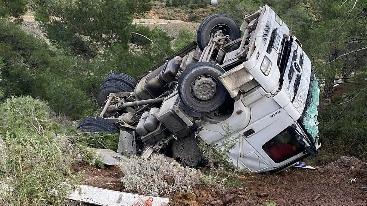 Datça'da virajı alamayan tır devrildi: 1 yaralı