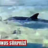 Uzun süre plaj içinde dolaşan Yavru Yunus balığını gören vatandaşlar ellerinde cep telefonu ile uzun süre Yunus balığını görüntüledi. Kıyıya çok yakın alanda yüzen Yunus balığı teknede bulunan vatandaşlar tarafından kendisine dokunulmasını izin verdi.