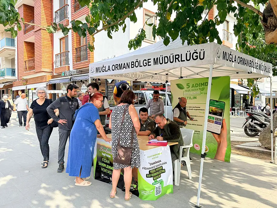 Muğla'nın Datça ilçesinde Datça Orman İşletme Şefliği ekipleri, 'Geleceğe Nefes-Yeşil Vatan Seferberliği' projesi kapsamında ilçe merkezinde ücretsiz fidan dağıtımı yaptı.