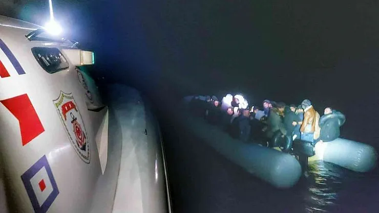 Datça ilçesi açıklarında devriye görevi yürüten Sahil Güvenlik Botu tarafından denizde hareket halindeki lastik bot durduruldu. Lastik bot içinde 42 düzensiz göçmen yakalandı.