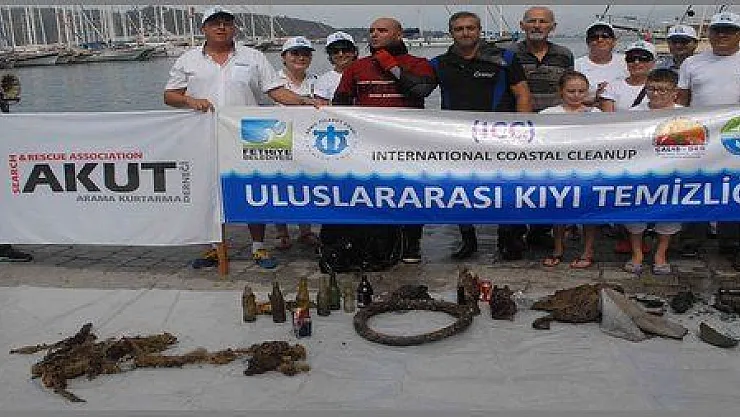 Muğla'nın Fethiye İlçesi'nde Uluslararası Kıyı Temizliği Kampanyası kapsamında yapılan sembolik deniz dibi temizliğinde 5 dakikada çok sayıda atık çıkartıldı