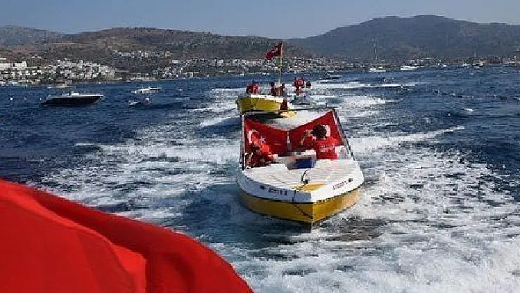 Bodrum'daki 15 Temmuz anma etkinlikleri kapsamında bir gurup Gündoğan Koyu teknelerine bayrak açarak şehitleri andı.