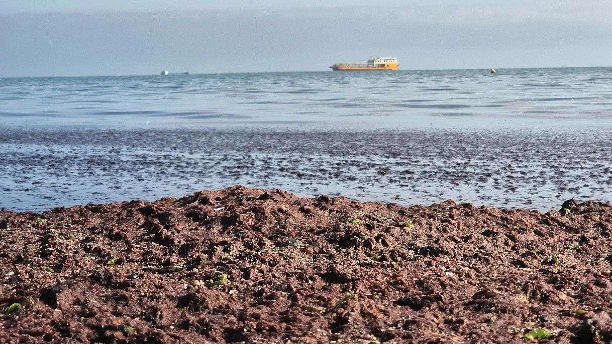 Poyraz fırtınasının ardından Tekirdağ sahilleri, kıyıya vuran kırmızı yosunlarla dikkat çekici bir manzara oluşturdu.