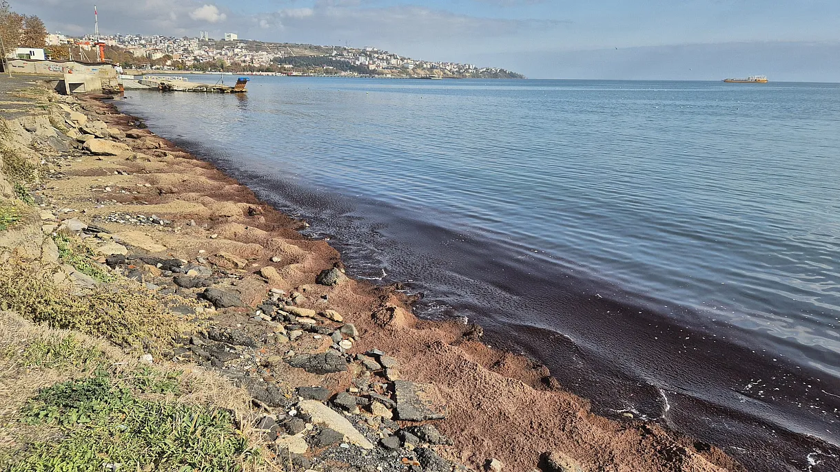 Poyraz fırtınasının ardından Tekirdağ sahilleri, kıyıya vuran kırmızı yosunlarla dikkat çekici bir manzara oluşturdu.
