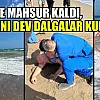 Dalgalı havada denize giren kişi, boğulma tehlikesi yaşadı. Denizde mahsur kalan şahıs, kıyıya çarpan dev dalgalarla sürüklenerek sahile ulaşabildi.