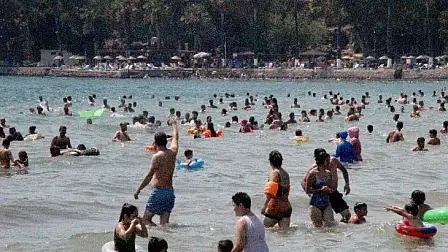 Denizde yüzecek yer kalmayınca Azmak'ta yüzdüler