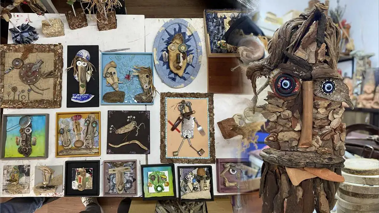 33 yıl esnaflık yapan 64 yaşındaki Nihat Atagöz, deniz kıyısından topladığı odun, taş ve metal parçalarını sanata dönüştürüyor. Karikatür, heykel ve mozaiği birleştiren Atagöz'ün eserleri, dünyanın dört bir yanına ulaşıyor.