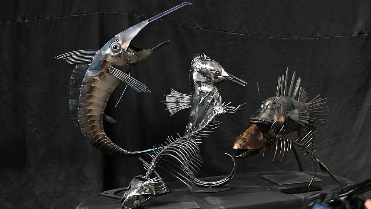 Eskişehir'de yaşayan Mücahit Diyar Arız, aile mesleği olan balıkçılığı sanatsal bir ifadeye dönüştürerek, metal parçalarla sanat eserleri üretiyor.