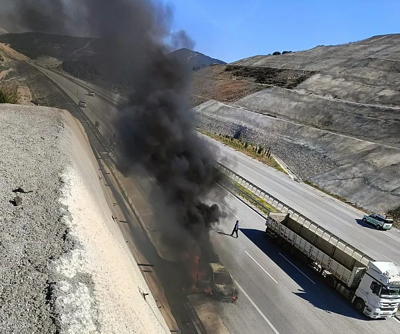 Denizli-Aydın Otoyolu'nda korku dolu anlar! Otomobil alev topuna döndü