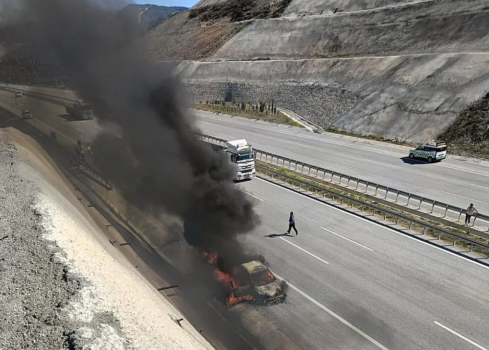 İhbar üzerine bölgeye itfaiye ve otoyol jandarma ekipleri sevk edildi. Zaman zaman küçük çaplı patlamalarında yaşandığı yangında, araçtan sızan yakıt nedeniyle alevler çevreye saçıldı. İtfaiye yangına müdahale ederken, jandarma ekipleri de bölgeyi güvenlik çemberine aldı. Yangının tamamen söndürülmesinin ardından otomobilden geriye sadece bir metal yığını kaldı. Yangınla ilgili soruşturma başlatıldı.