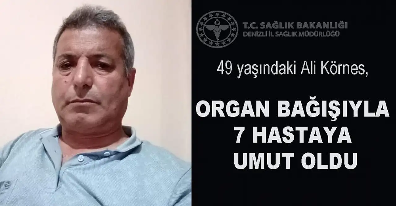 Denizli'de geçirdiği trafik kazası sonucu hastanede sürdürdüğü yaşam mücadelesini kaybeden 49 yaşındaki Ali Körnes'in ailesi tarafından bağışlanan organları, Denizli Devlet Hastanesi'nde alınarak İzmir ve Muğla'da organ bekleyen yedi hastaya umut oldu.