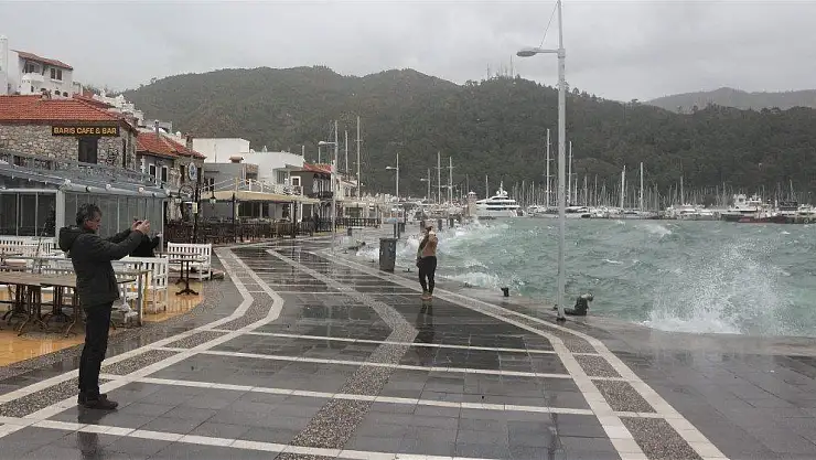 Marmaris'te saatteki hızı 113 kilometreye ulaşan rüzgarın oluşturduğu dalgaları fotoğraflamak isteyen bazı vatandaşlar adeta birbirleriyle yarıştı. Vatandaşların fotoğraf çekme merakı ilginç görüntüler oluşturdu.