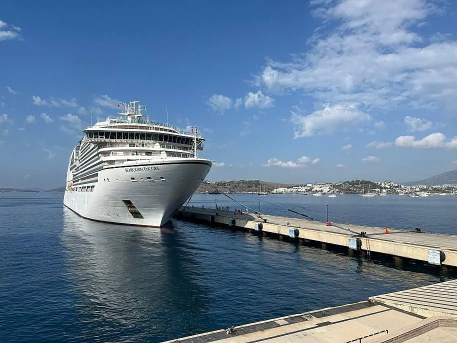 Muğla'nın Bodrum ilçesine gelen 180 metre boyundaki Seabourn Encore adlı yolcu gemisi, 568 yolcu getirdi.