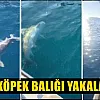 Tekneyle balık tutmak için denize açılan balıkçılar en büyük köpek balığı cinslerinden biri olan kum köpek balığı yakaladı.