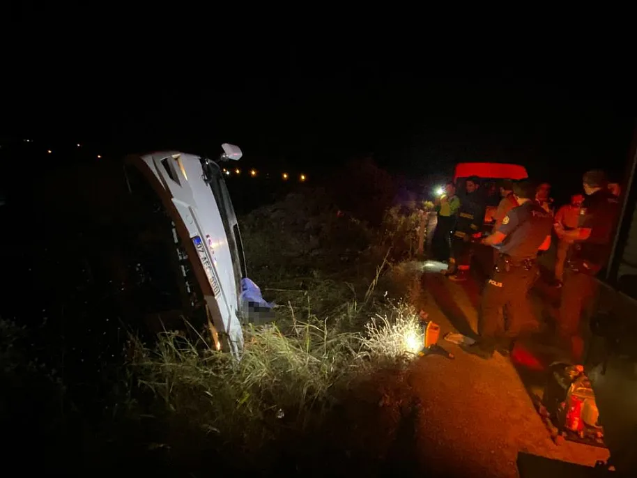 Antalya'nın Serik ilçesinde yoldan çıkarak devrilen midibüsün altında kalan sürücü hayatını kaybetti.