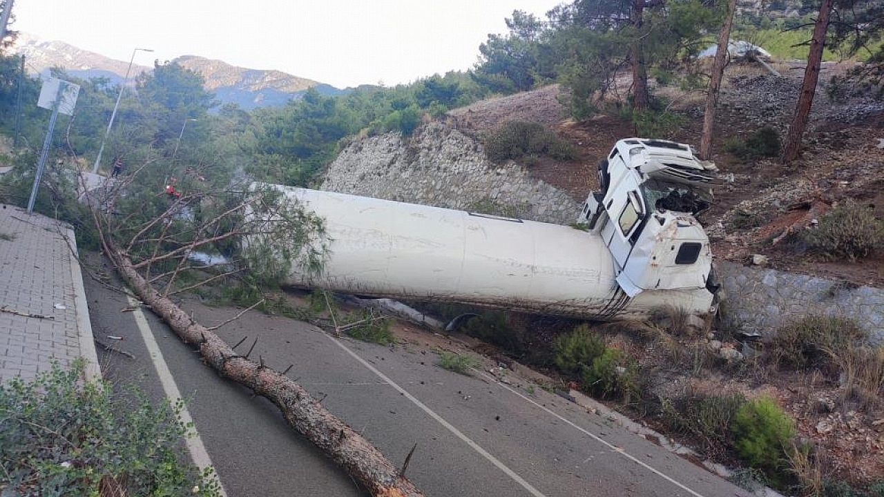 Muğla'nın Ula ilçesi Sakar Geçidi'nde doğalgaz yüklü tanker, 50 metre yükseklikten uçuruma yuvarlandı. Bölgede gaz sızıntısı ihtimaline karşı önlem alındı.