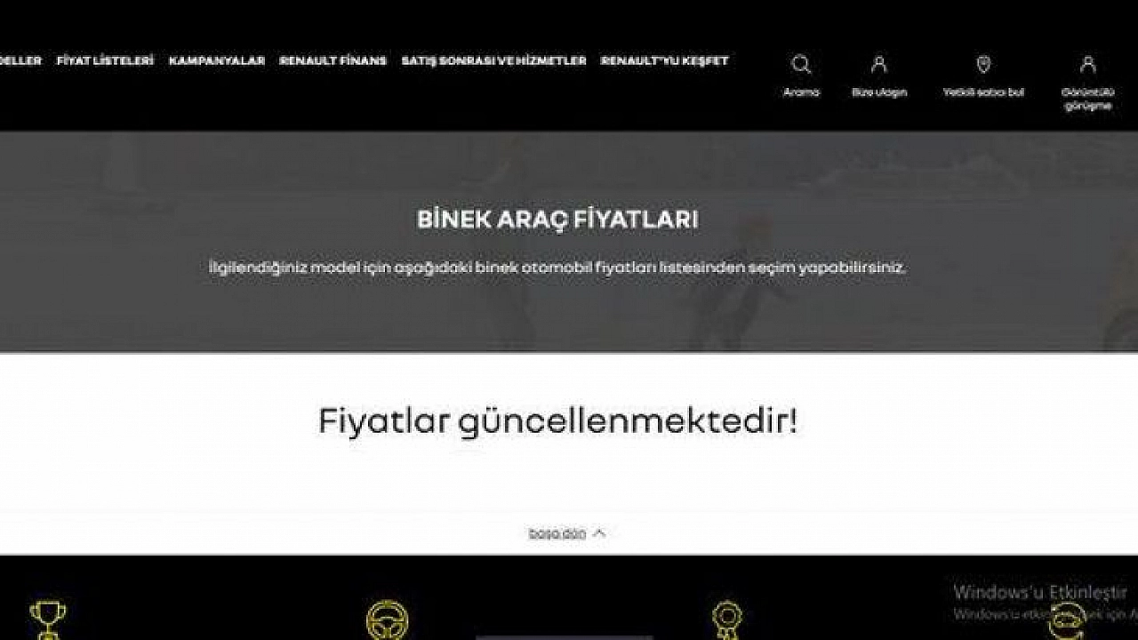 Renault firması internet sitesinden araç fiyatlarını kaldırarak fiyatlarda güncellemeye yapmaya başladı.